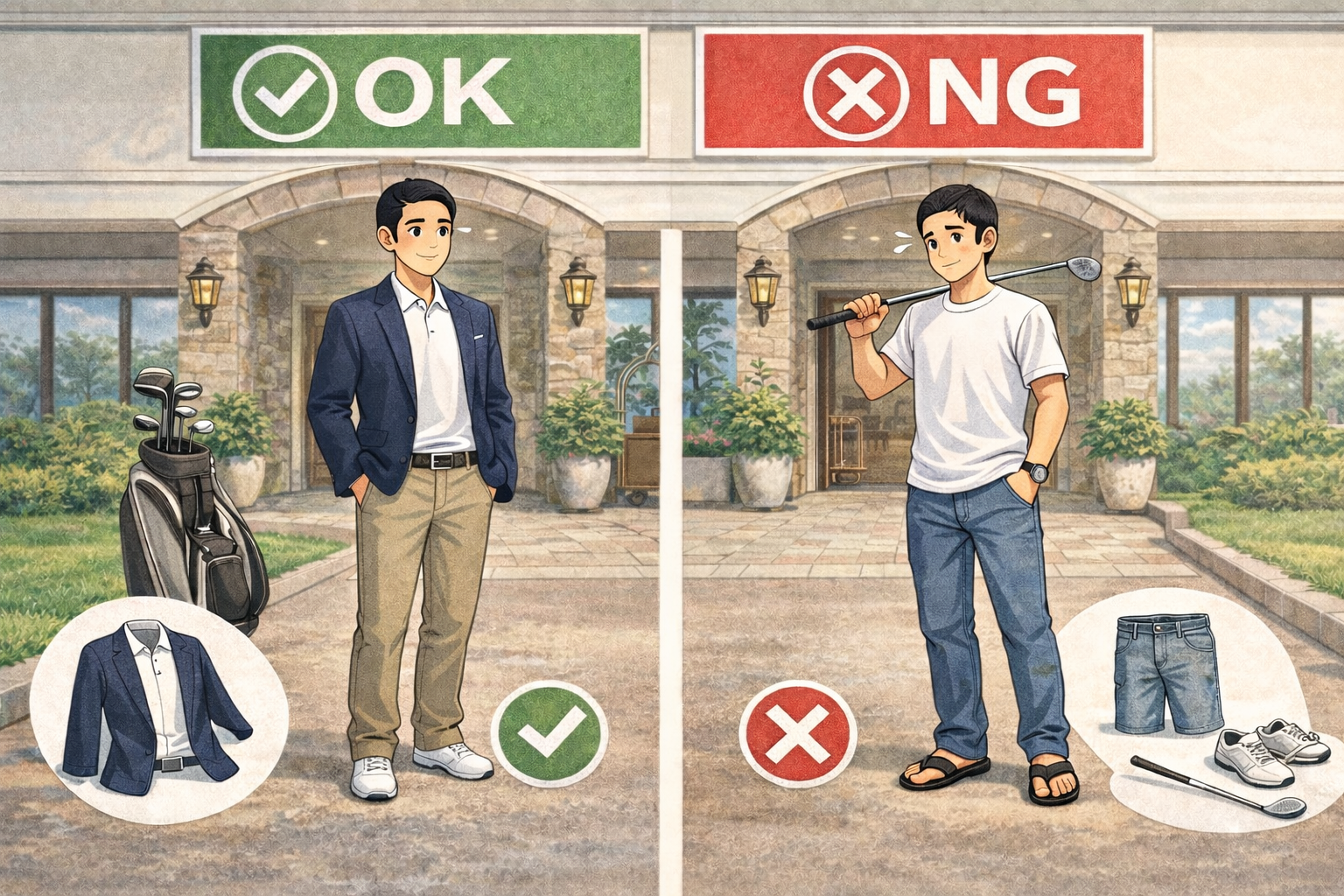 • ゴルフ場に到着したときの服装(クラブハウス)